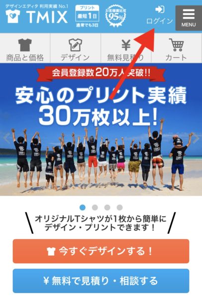 ① 右上の「ログイン」を選択