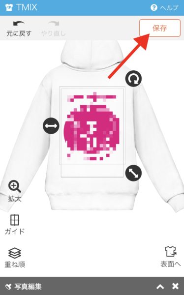 ※印刷範囲が違う商品を選択した場合は、画像が枠内に収まるように移動してください。